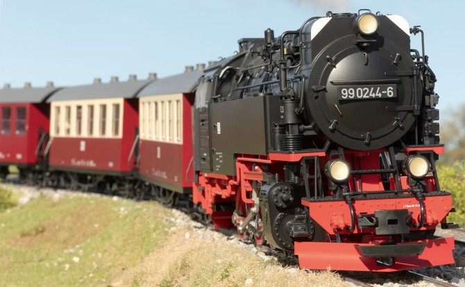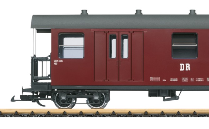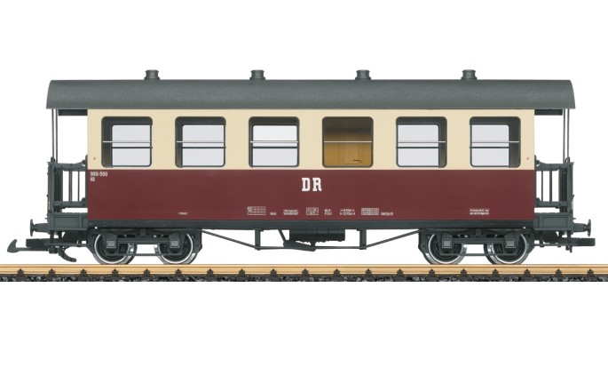 Modell eines Personenwagens mit Gepäckabteil der Deutschen Reichsbahn aus dem Netz der Harzer Schmalspurbahn. Originalgetreue Farbgebung und Beschriftung der DR Epoche IV. Viele angesetzte Details, Inneneinrichtung mit Toilette. Metallradsätze. Länge über Puffer 50 cm.